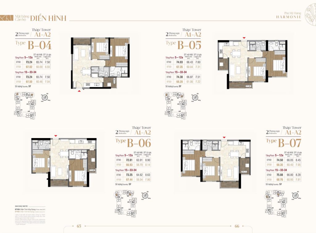 Kiểu Nhà căn hộ 2 Phòng Ngủ B04 – B05 – B06 – B07