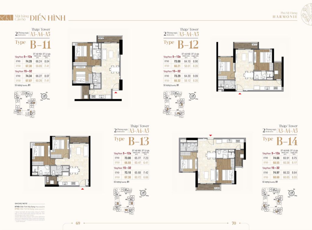 Kiểu Nhà căn hộ 2 Phòng Ngủ B15 & Kiểu nhà căn hộ 3 Phòng Ngủ C01 – C02