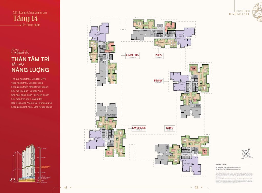 Mặt bằng Tầng 14: Là tiện ích chung với không gian thiền, Yoga và vườn sức khỏe mang lại sự an yên tuyệt đối giữa mây trời.