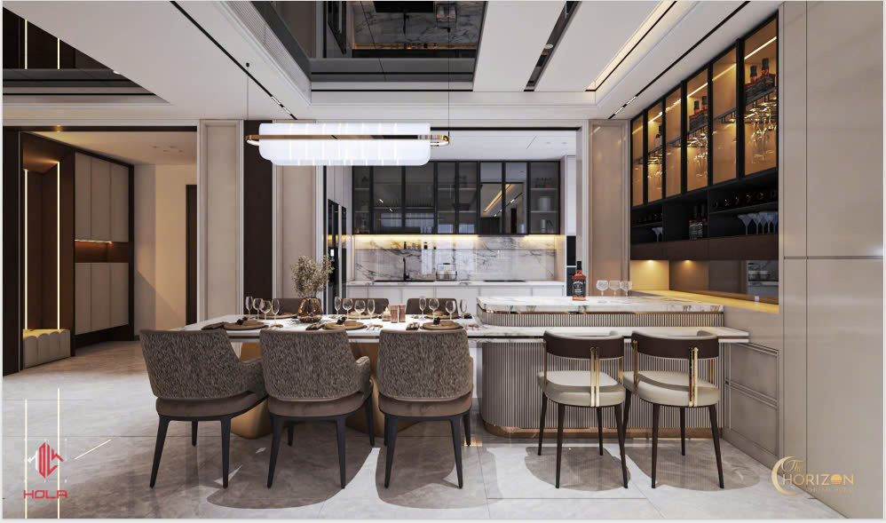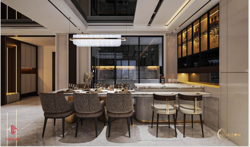 Liền kề ngay dưới chân chung cư The Horizon là tổ hợp các nhà hàng cao cấp bậc nhất như: Nhà hàng CHLOE, nhà hàng Yeebo, trà sữa Gongcha, nhà hàng Boomerang Bistro Sài Gòn, Thái Express, King Cross, Tokyo Deli, Chuk Chuk, nhà hàng chay Veganizta, nhà hàng Âu El Gaucho Argentinian Steakhouse, Cà phê Starbuck, Highland Coffee, nhà hàng Sushi Hokkaido Sachi, San Fu Lou Cantonese Kitchen, Hadilao và vô số nhà hàng ăn uống cao cấp xung quanh ngôi nhà của mình.